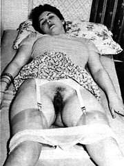 Cute blonde girl in stockings showing furry pussy, vintage picture